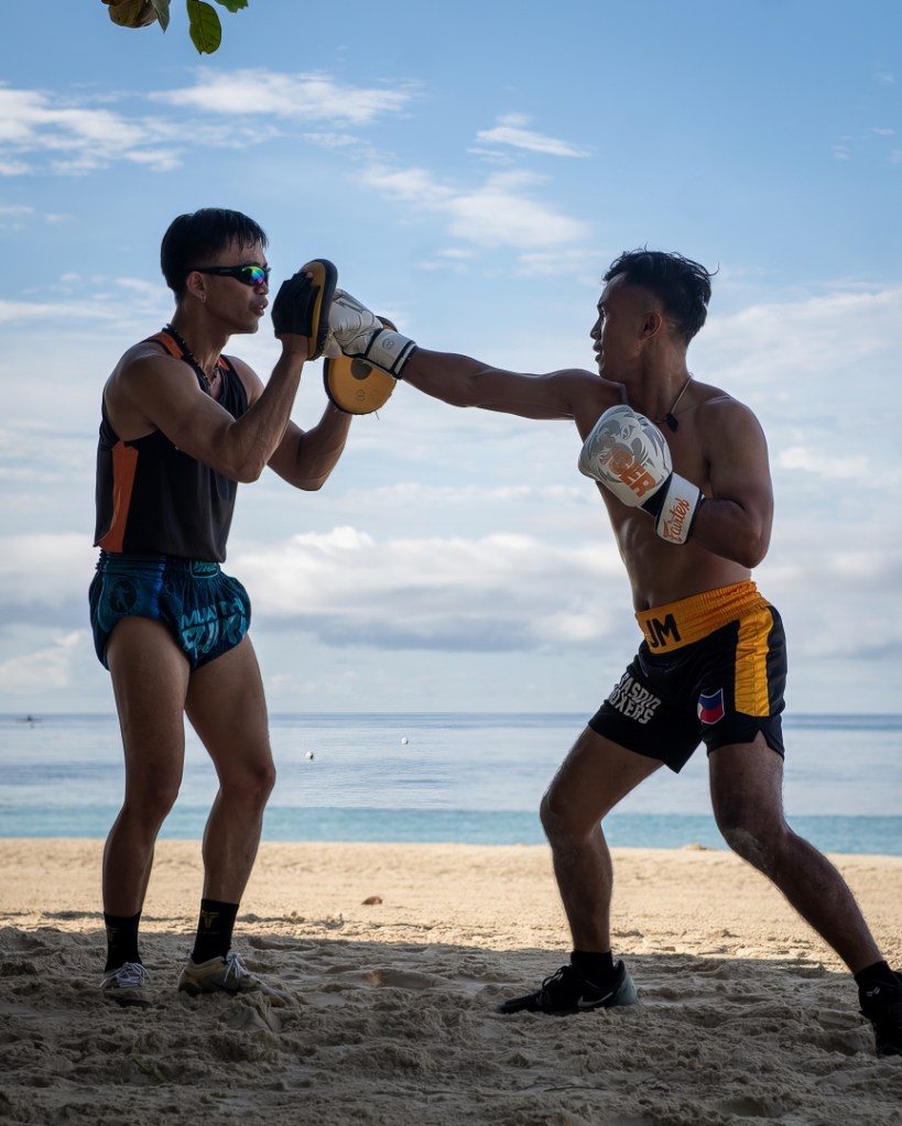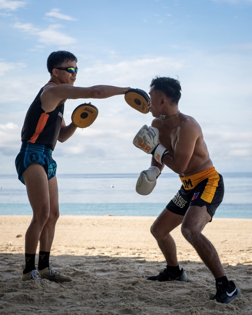 I had the chance to join and photograph one of these sessions yesterday, and it was epic. The morning starts with a run through Panglao, with the destination being the beautiful beachfront near Oceanica resort. The training then shifts to the sand, combining cardio and conditioning drills with the sound of the waves in the background. It’s a challenging but incredibly rewarding experience that connects you with both the sport and the stunning natural environment of Bohol.
